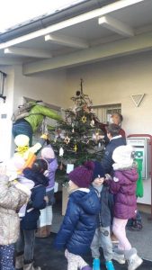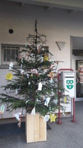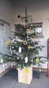 Tagesschulkinder dekorieren den Weihnachtsbaum der Gemeinde